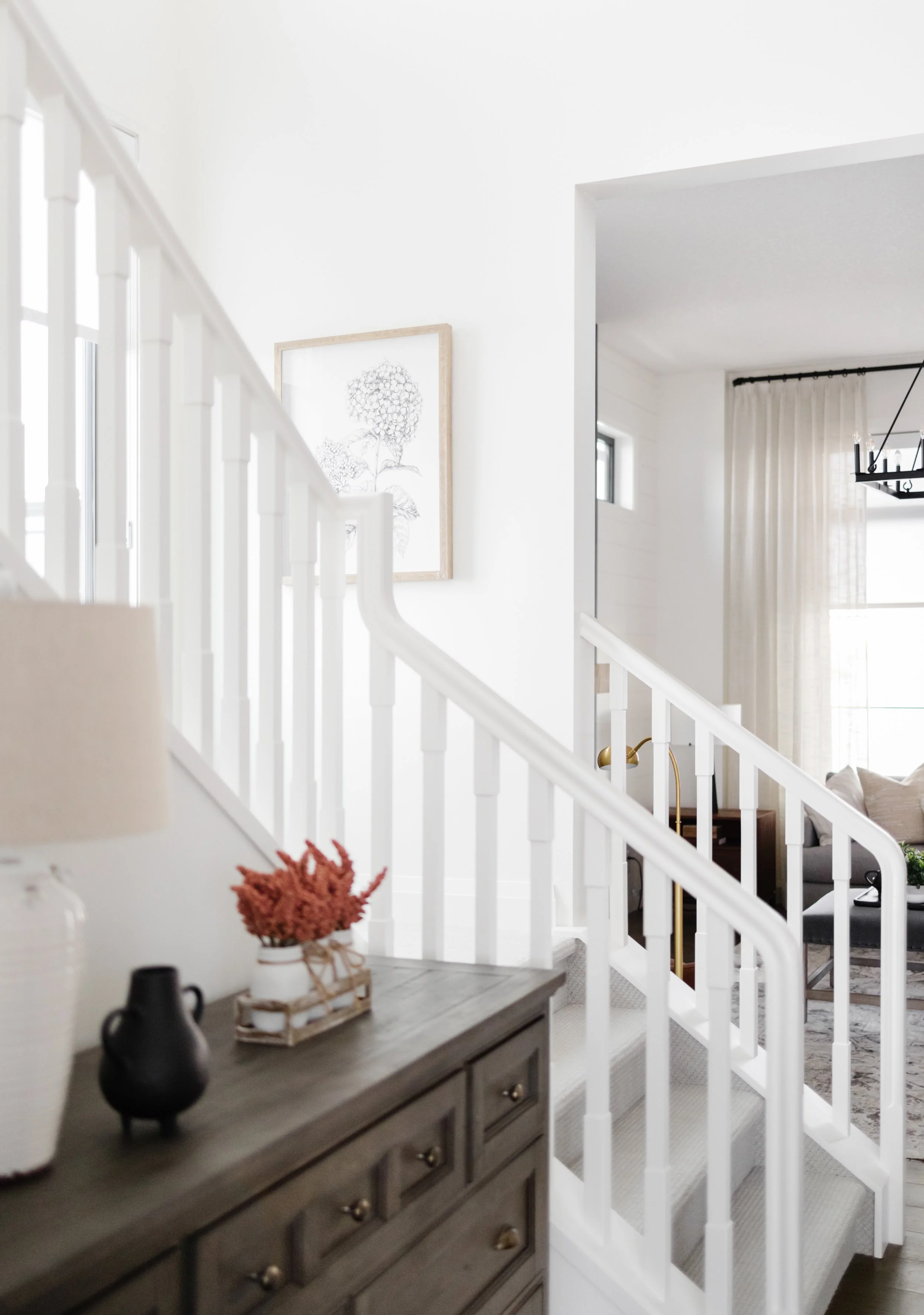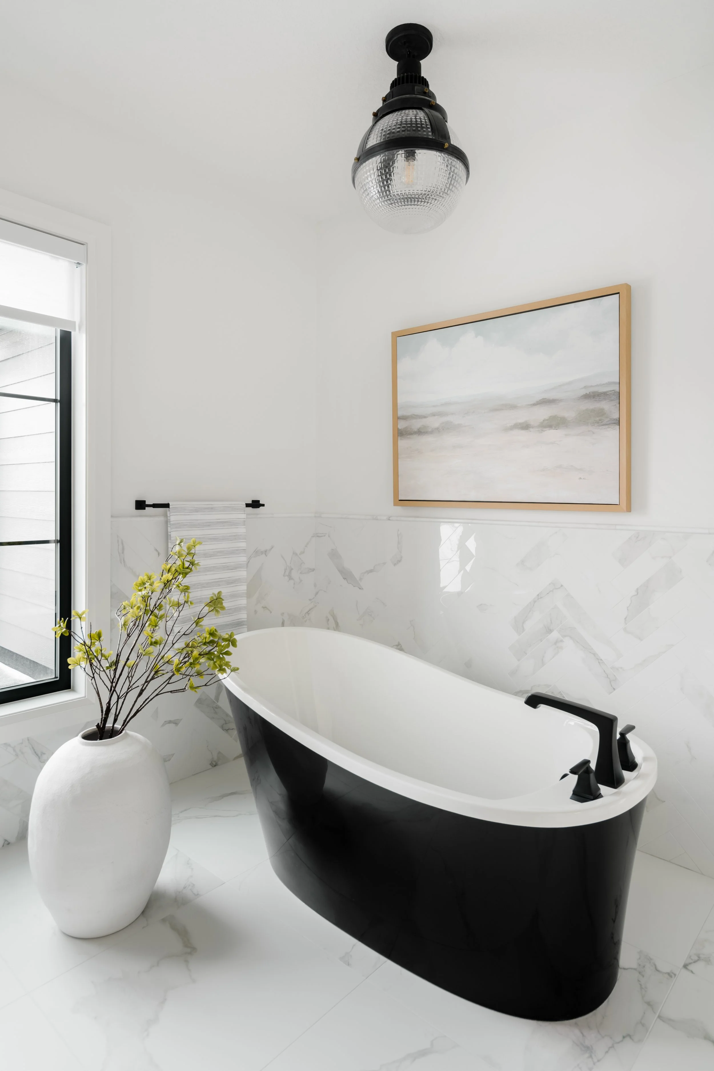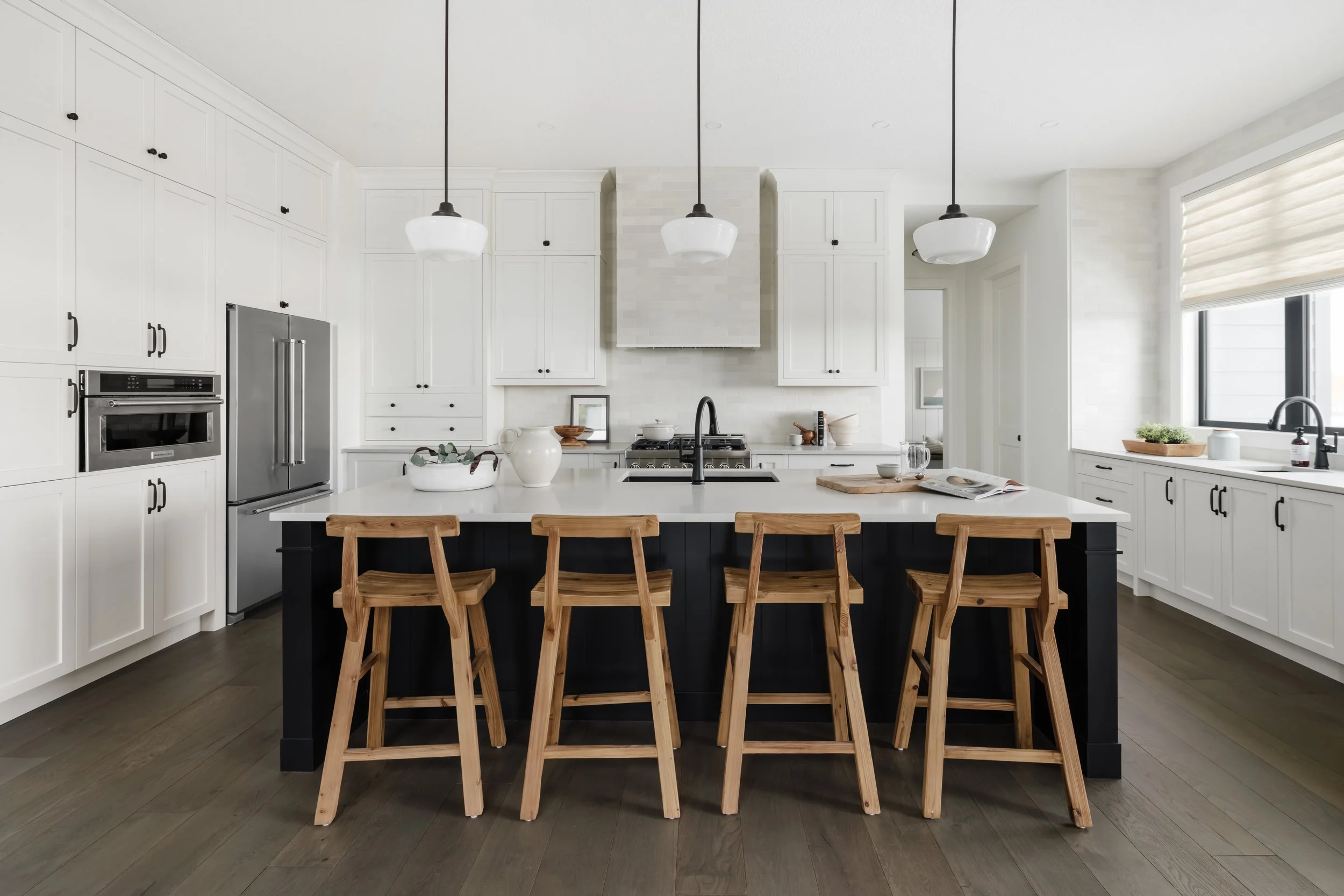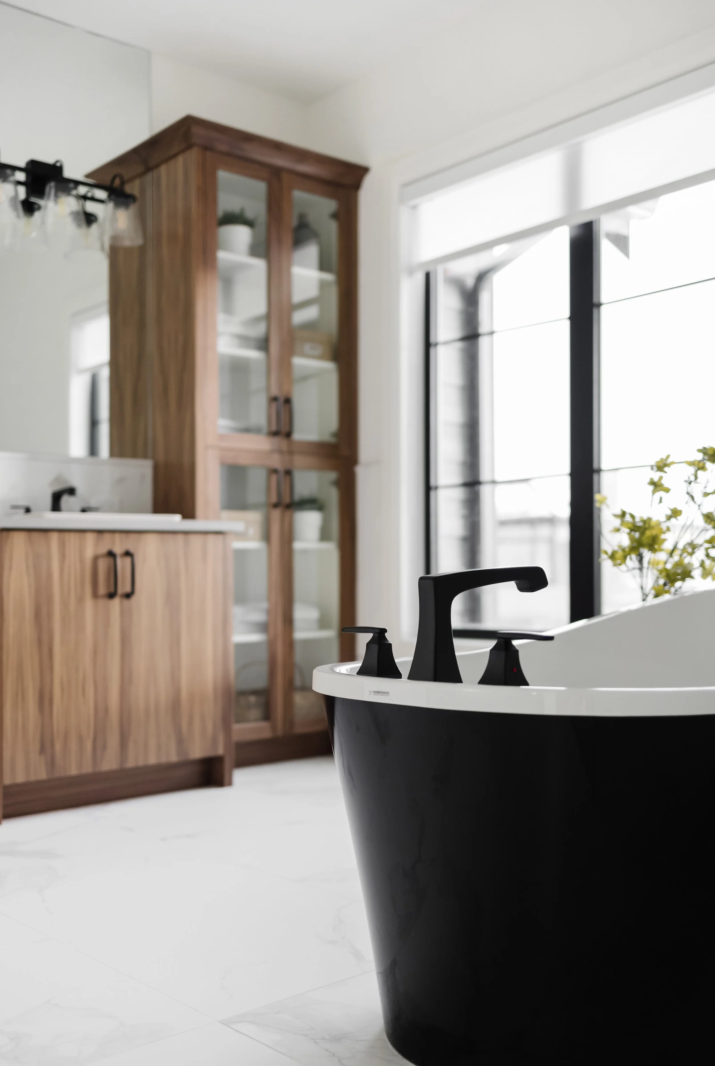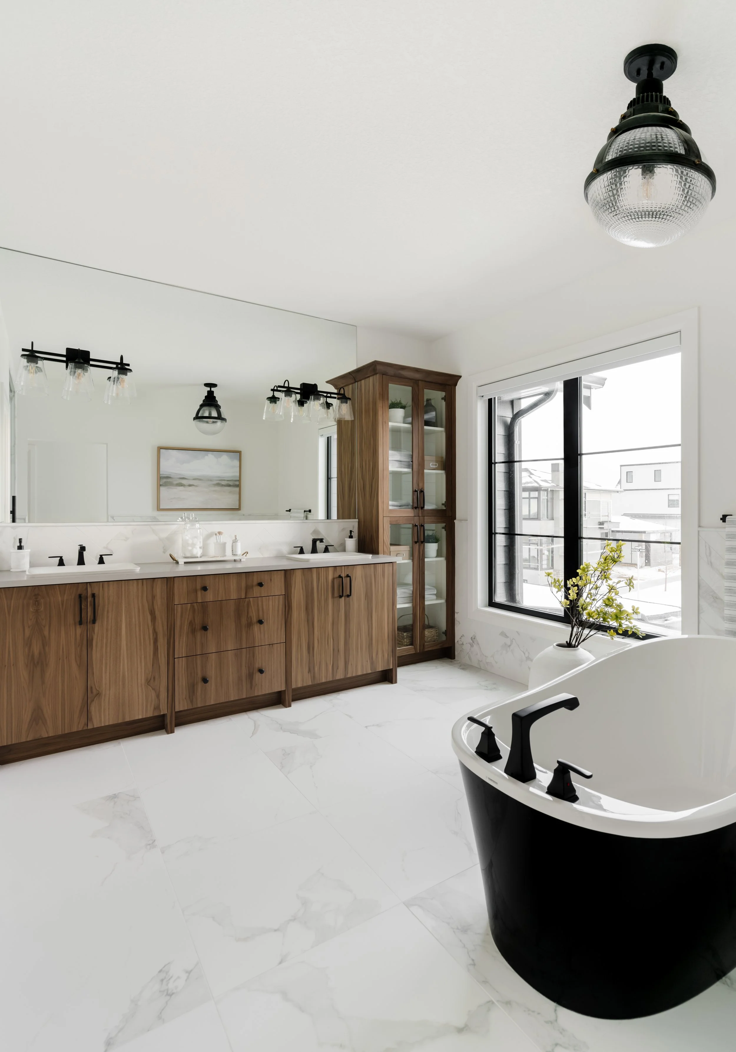 With the use of high contrasting finishings and warm woods this home is a take on the modern farmhouse style that exudes classic charm.